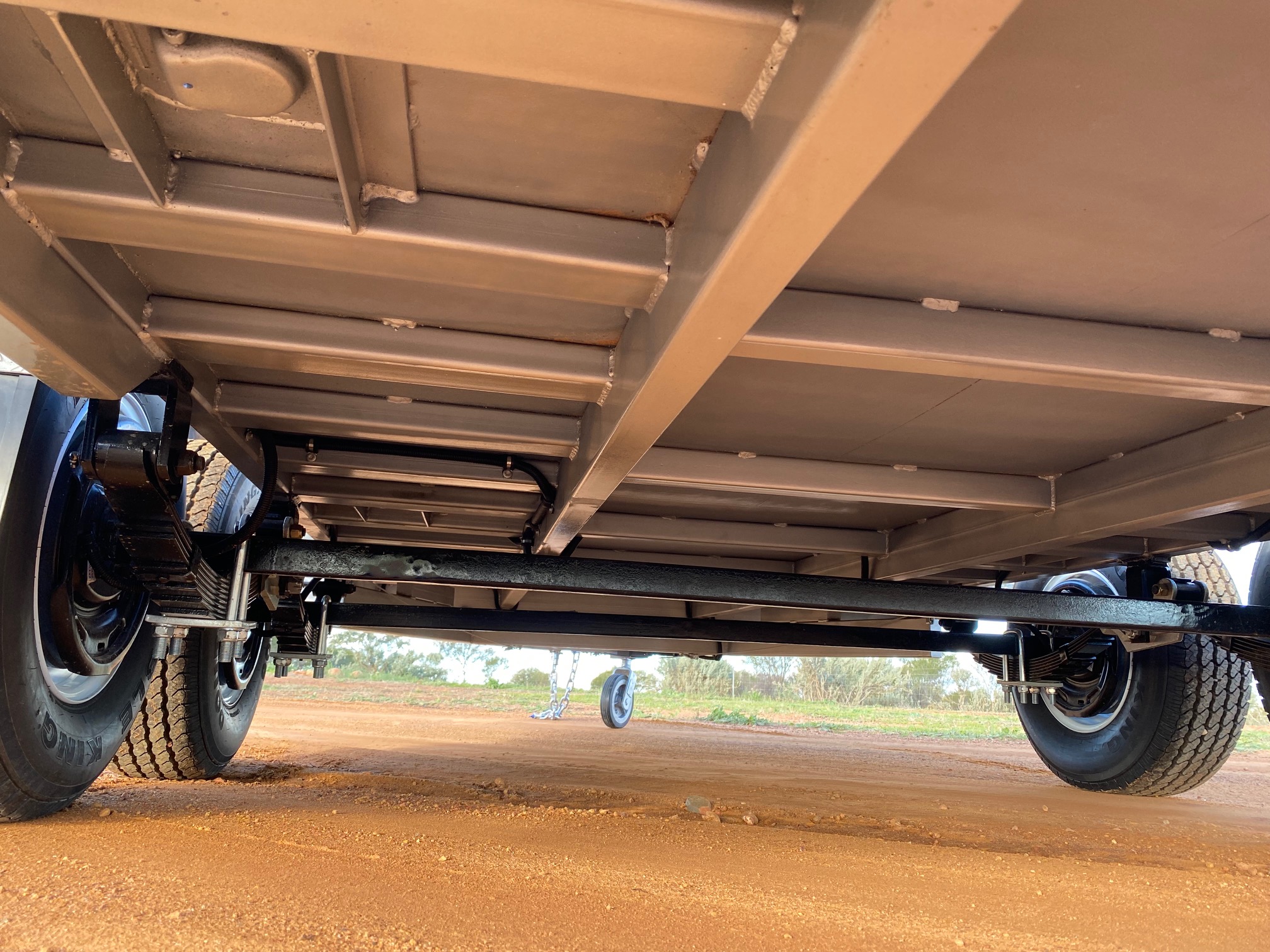 Universal Trailers’ rocker roller suspension system as been designed to handle even the most demanding tracks. By distributing the load evenly across all axles, this innovative setup ensures a smooth, stable ride, even on the roughest, most uneven roads. The 100x10mm spring hangers are fully welded to the chassis on all sides and provide unparalleled strength and durability, eliminating the risk of hangers tearing off the 4mm RHS. This robust construction, combined with the rocker roller suspension’s superior weight distribution, creates a trailer that can handle any challenge the outback throws its way, giving you peace of mind and reliable performance, mile after mile, year after year.